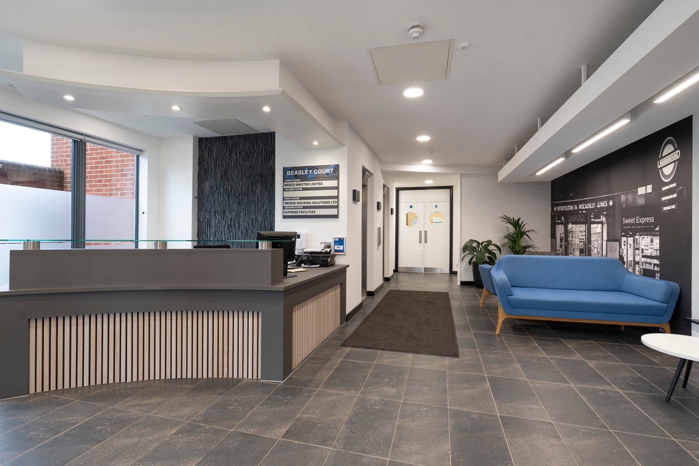 Beasley Court has undergone a comprehensive refurbishment, delivering an expanded modern and contemporary reception providing breakout areas for use by our occupiers and new fully fitted and furnished suites on the ground and first floors.
